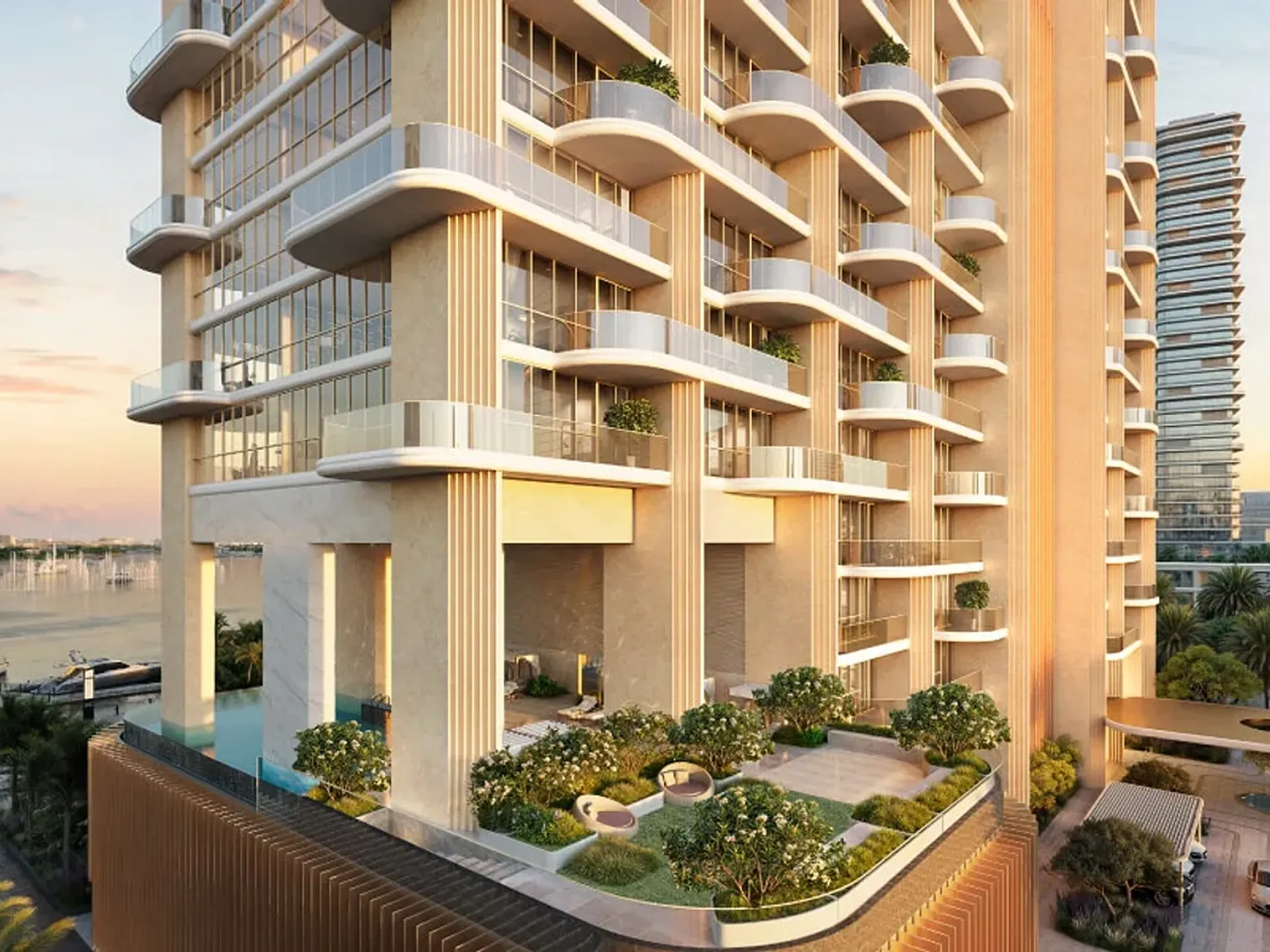 Atélis at d3, developed by Meraas, stands as a striking landmark in Dubai Design District—a waterfront residential tower that combines artistic design, architectural innovation, and resort-style living. Designed by the world-renowned firm Skidmore, Owings & Merrill (SOM), the building artfully weaves curves inspired by the desert flower into its façades—petal-like balconies cascade outward, offering both privacy and spectacular views of the creek and city.